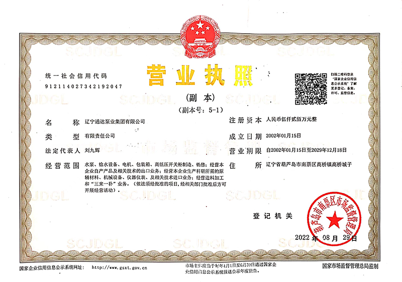 辽宁通达泵业集团有限公司,在专业技术、设备、设施、人员组织、经验业绩等方面具有完善的质量保证体系、制造质量控制、经营管理的相应资格、能力和良好的银行资信、商业信誉。将继续以振兴民族泵类产品为己任,以科技创新为动力,致力于成为技术先进、品种齐全,具有泵类产品、给水设备、电控设备、电机供应一体化能力的现代企业。为用户解决流体输送中的难题,充分满足用户对产品多样化的需求,提供更为高效节能、科技环保的完整售前、售中、售后服务,并可根据用户的具体要求设计制造各种泵类产品。欢迎选购使用《神流》牌泵类产品,辽宁通达泵业集团有限公司董事长刘文喜、总裁刘九辉携全体员工竭诚为您服务,携手并肩、与时俱进,共创辉煌!